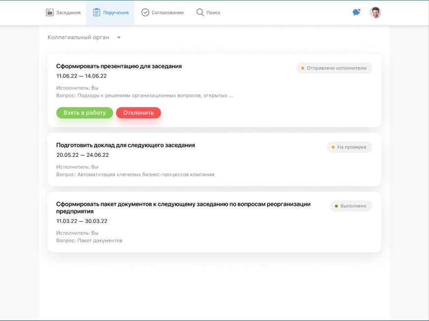 После заседания работа коллегиального органа не заканчивается: принятые решения должны быть доведены до исполнения, а сам процесс — оставаться под контролем. Однако именно этот этап во многих компаниях до сих пор остается вне цифрового контура. Поручения фиксируются в таблицах, пересылаются по почте, ведутся в разрозненных файлах, из-за чего усложняется контроль сроков, статусов и зон ответственности.