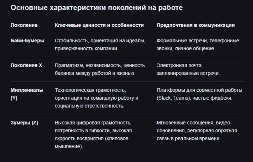 Эффективное взаимодействие в многопоколенческой команде на современном этапе требует перехода от универсальных методов управления к персонализированным стратегиям, учитывающим различия в коммуникациях, мотивации и технологических навыках. Ключевым трендом становится создание такой среды, где опыт «бумеров» дополняется цифровой гибкостью «зумеров».